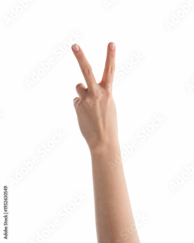 Young female hand counting two isolated on white