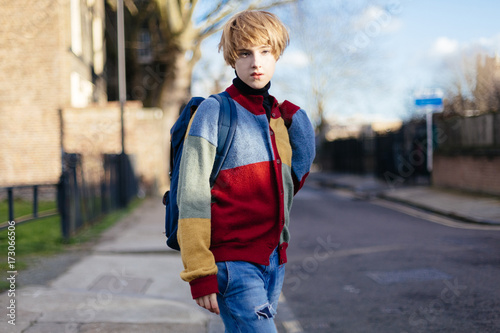 Young Female Student with Backpak on the Street