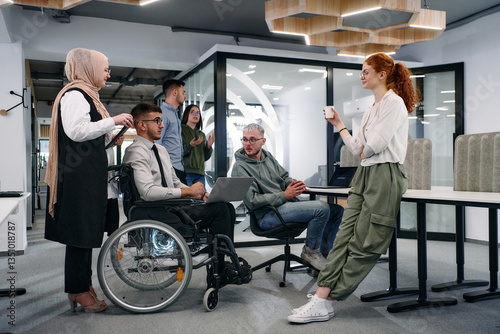 Young group of business people brainstorming together in a startup space, discussing business projects, investments, and solving challenges