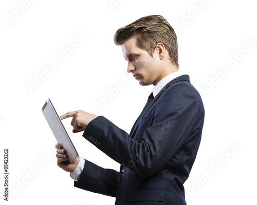 Young handsome businessman with tablet