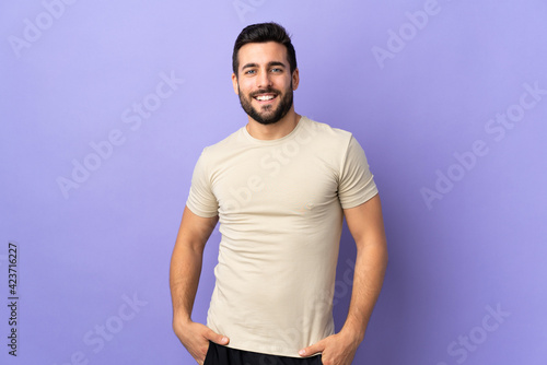 Young handsome man with beard over isolated background laughing
