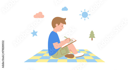 Young Individual Sitting Down While Illustrating His Imagination Using A Pencil And The Paper