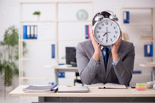Young male employee in time management concept