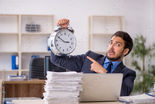 Young male employee in time management concept