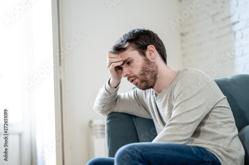 Young man suffering from depression hopeless and alone at home