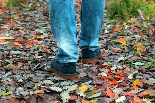 young man walking in autumn park