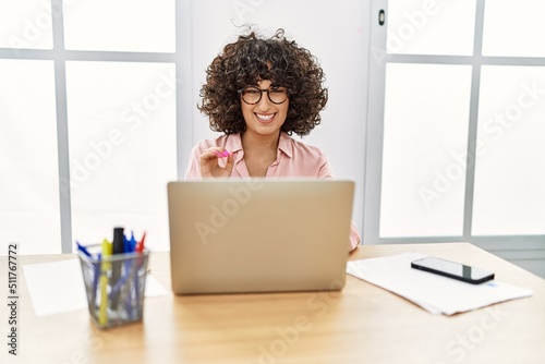 Young middle east woman having video call communicating with deaf language at office