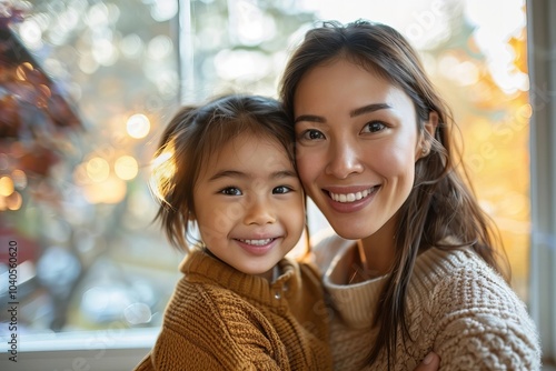 Young mother happily learning sign language to communicate with her hearing impaired daughter.