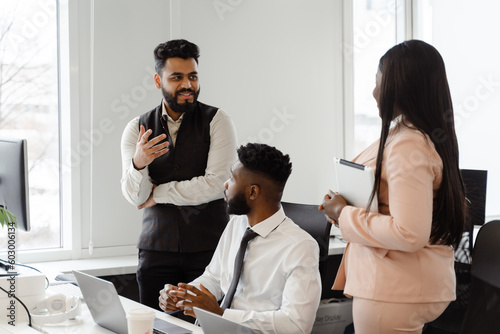 Young multiracial people in business suits working together at office