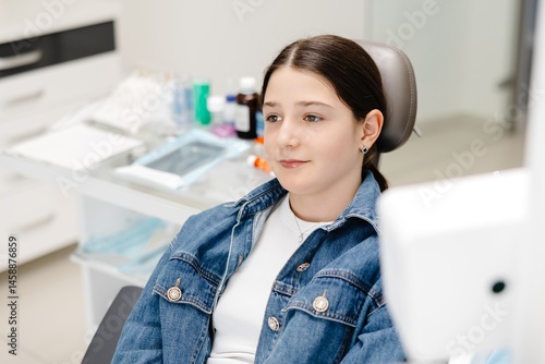 Young patient waiting for dental examination in dentist office