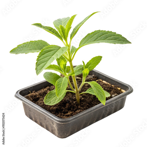 Young Plant Seedlings in a Black Plastic Tray on Transparent Background