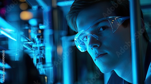 Young Scientist in Safety Glasses Observing Laboratory Equipment