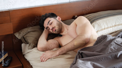Young Sleepijng Shirtless Man in Bed