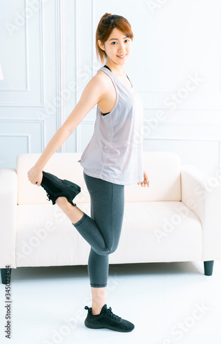 Young woman doing exercise at home in the living room