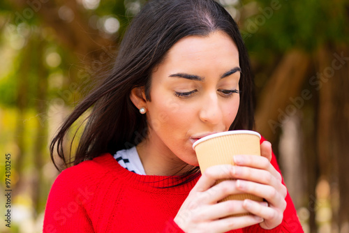 Young woman holding a take away coffee at outdoors