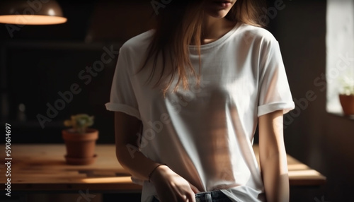 Young woman in casual clothing enjoying leisurely reading generated by AI