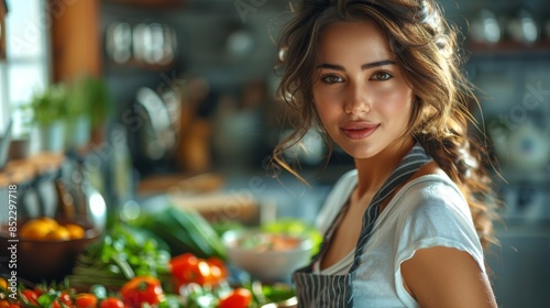 Young Woman Preparing a Healthy and Balanced Meal in a Vibrant Kitchen - Realistic Lifestyle Depiction