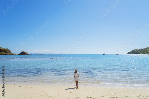 Young woman walking toward the beach