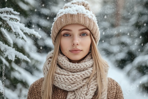 Young Woman Winter Portrait in Snowy Outdoor