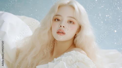Young woman with stunning goldblond hair, radiating happiness and cuteness in every moment.