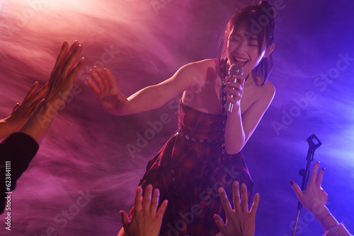 Young women singing in the bar
