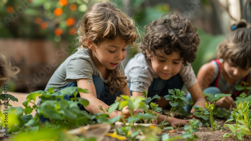 youth gardening workshop, kids engaged in gardening at a community garden, discovering nature and sustainability through a workshop