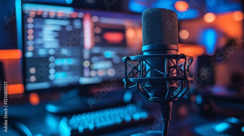 YouTuber conducts live stream using advanced microphone setup in a well-lit gaming environment