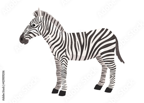 Zebra, striped horse, African savannah animal, striped hide. Wild animal, cute character, cartoon vector drawing.
