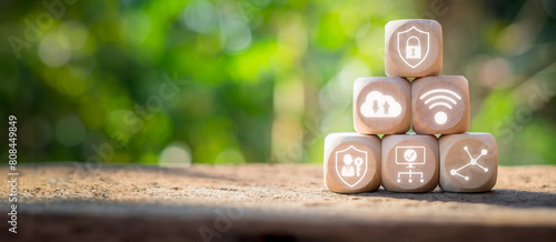 Zero trust concept, Wooden block on desk with zero trust icon on virtual screen.