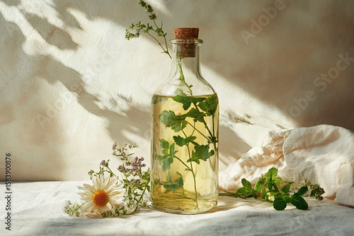 Zero waste summer herb scrap infused vinegar in upcycled bottle