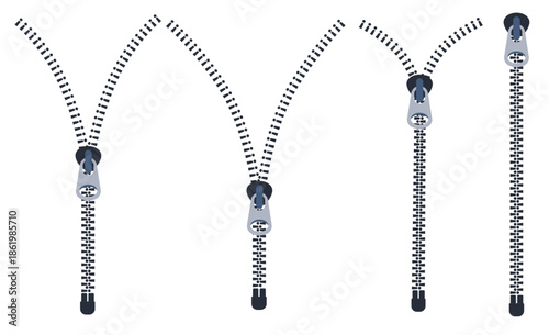 zipper closed and open zip clothes accessory vector