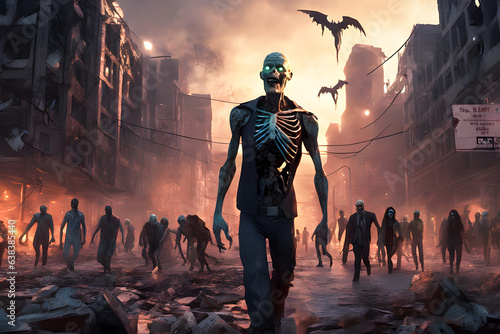 Zombie horde. Zombie apocalypse scene. Generative Ai
