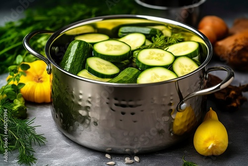 Zucchini cut and boiled in a kitchen.