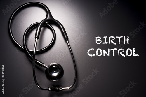 "Birth Control" word with stethoscope on background - health concept. Medical conceptual