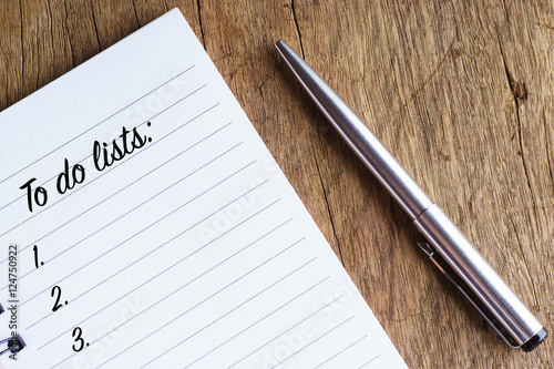 "To do lists" words on notebook with pen near it on wooden background - business and to do conceptual