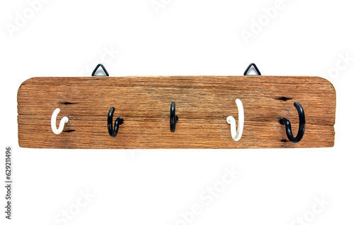 Wood hook hanger isolated on white background. Wooden wall hook hanger holding isolated