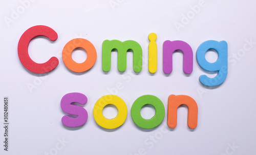 "Coming soon" written with color sponge