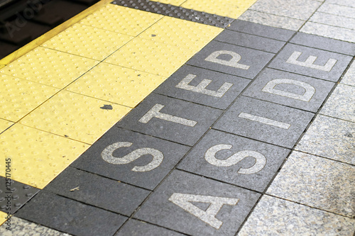 "Step aside" warning sign on ground in subway in New York