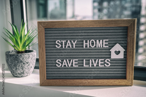 "STAY HOME SAVE LIVES" staying home self quarantine COVID-19 Coronavirus text message sign for socia
