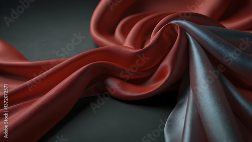 "Velvet Symphony: Luxurious Draped Fabrics in Red and Gray"