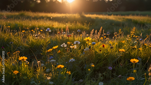 "Golden Hour Bliss: Vibrant Wildflower Field at Sunset"