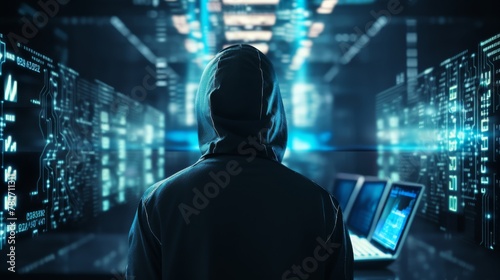 "Shadowed Figure in Hoodie Launching Cyberattack, a man with a hood: A Glimpse into Digital Vulnerabilities and Cybersecurity