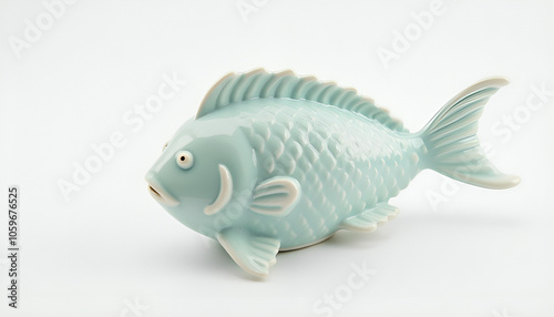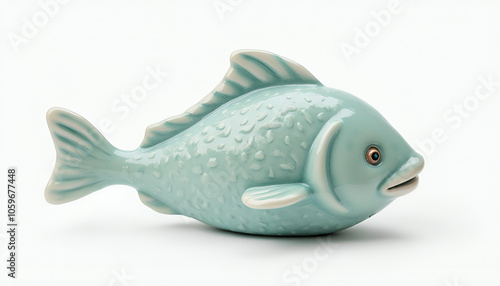 "A marine-style fish figurine on a white background, conveying relaxation and ocean vibes."