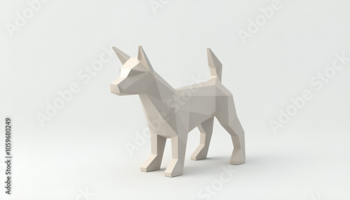 "A geometric-style dog figurine placed on a white background, showcasing contemporary art in home decoration."
