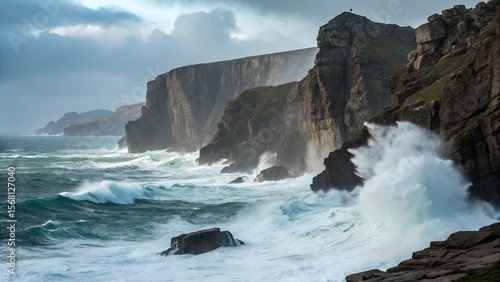 "Rocky Cliffs and Crashing Waves – Dramatic Coastal Seascape Background"