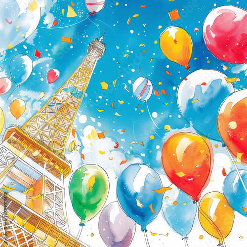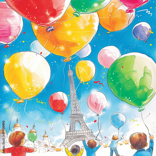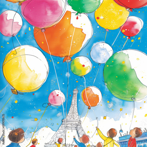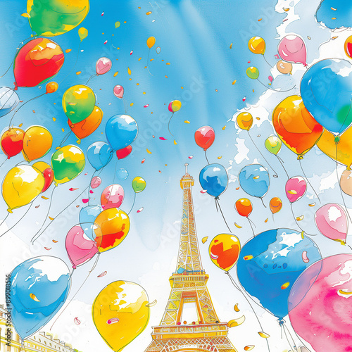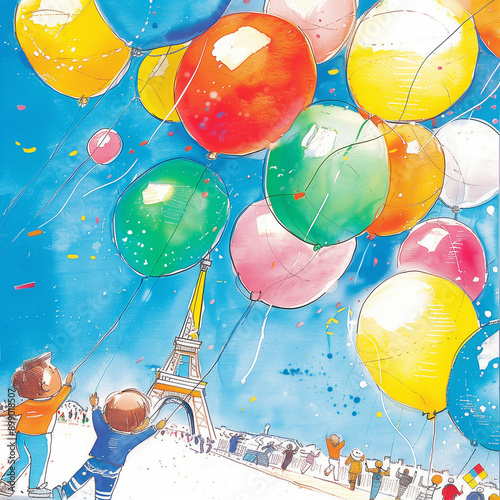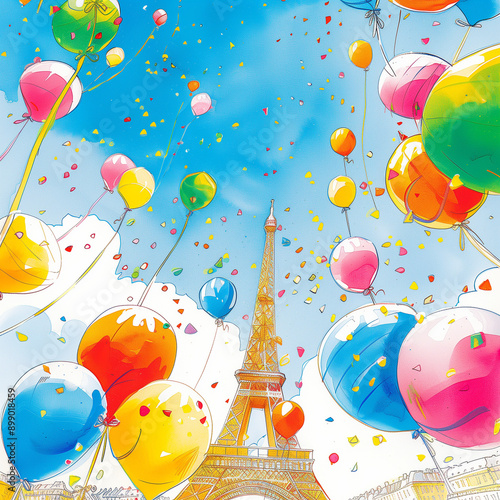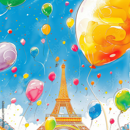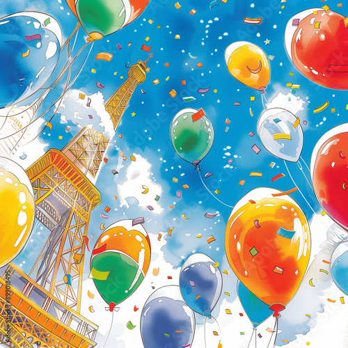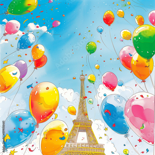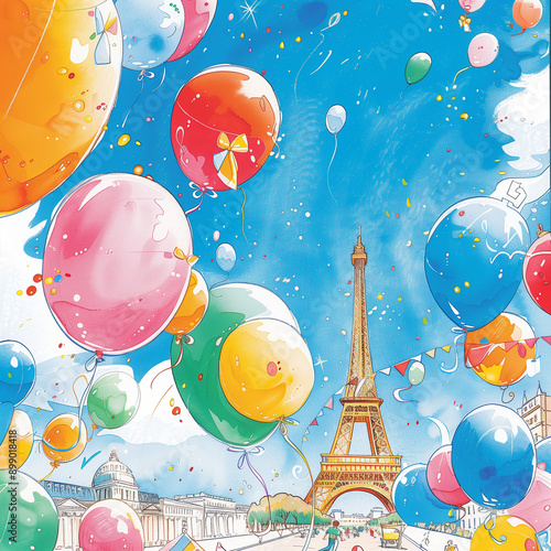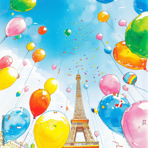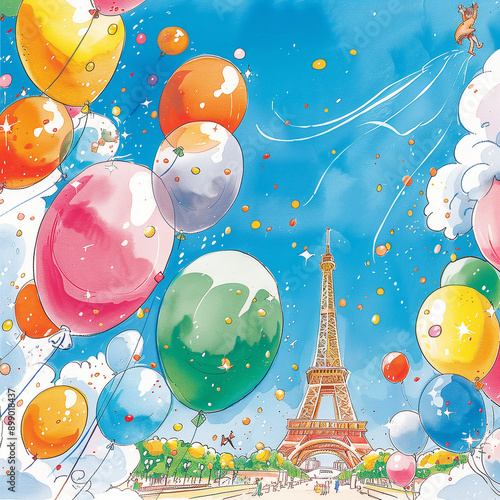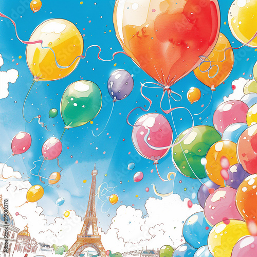 "Colorful Balloons Around the Eiffel Tower"