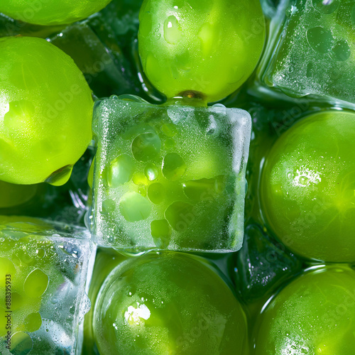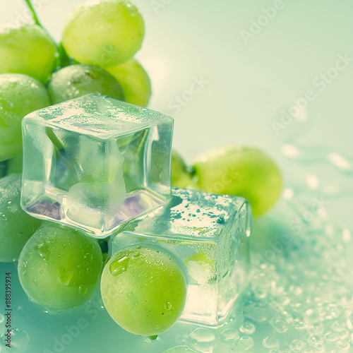 "Fresh Green Grapes with Ice Cubes"