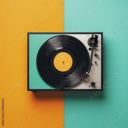 "Colorful Vinyl Record Player on a Two-Tone Background"