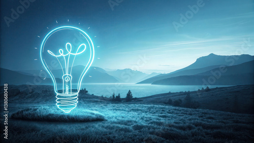 "A clean and minimalist vector illustration of a light bulb outlined in bright blue neon lines, with a soft glowing halo against a gradient blue background."