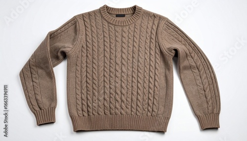 "Men’s traditional wool sweater in cable knit pattern, isolated on white background, winter clothing stock image"
